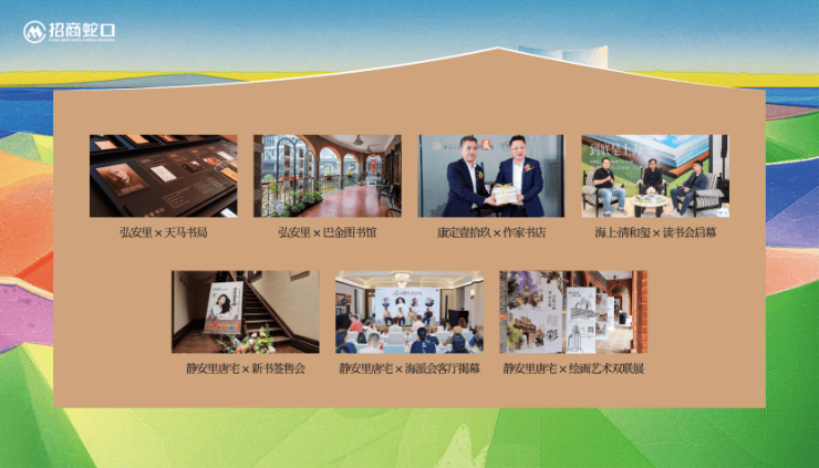 例如静安里唐宅,在保留了唐宅原有的建筑风貌与历史肌理的同时,赋予了它新的功能:这里不仅对外开放参观,让市民能走进老建筑感受岁月沉淀;同时也会更定期举办各类读书活动,《上海日报》城市和建筑历史专栏作家乔争月女士就带着个人著作走进了唐宅海派会客厅开展分享;联袂两位艺术名家郑辛遥、张安朴呈现「简·彩之间,意蕴上海」双联展。除此之外,弘安里天马读书会X巴金图书馆联动发声,让百年风貌与巴金情缘于此邂逅;康定壹拾玖&新闻晨报&作家书店三方联合打造出沪上首家「作家书房」示范点,展开一场精彩的文化「拾玖谈」。招商蛇口上海公司让每一块土地都承载记忆,让每一个社区都生长出了文化生命力。