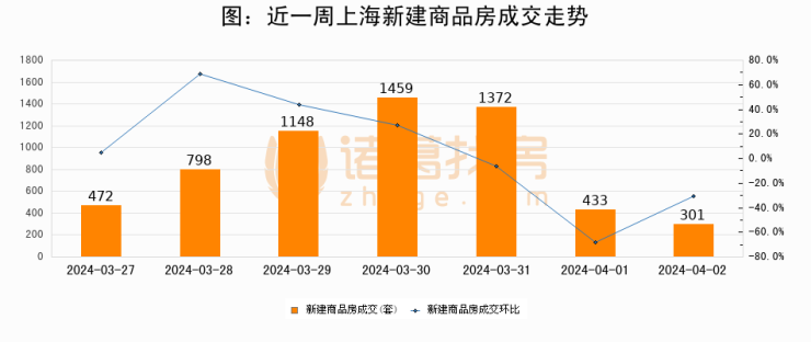【上海成交日报】04月02日新房成交301套;涨价房源189套
