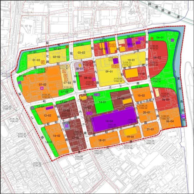 ZBD-03(上理工附近区域)规划2宗住宅用地,占地面积约6.1万平方米,容积率2.8,建筑高度60至80米。该区域将结合复兴岛运河规划,打造充满活力、生态宜居的滨水岸线。