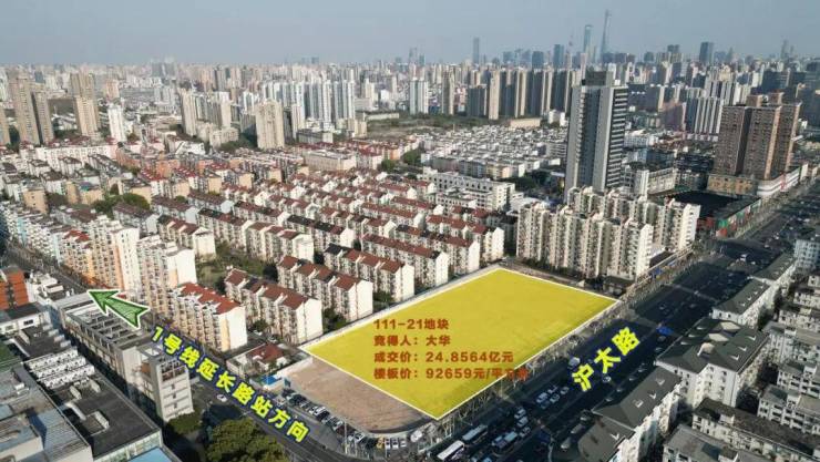 大华24.8564亿元竞得静安大宁“地王”,楼面价92659元/㎡,溢价率32.31%。