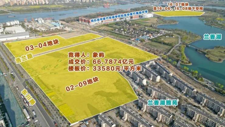 象屿66.7874亿元竞得闵行兰香湖旁低密度地块,楼面价33580元/㎡,溢价率18.97%。