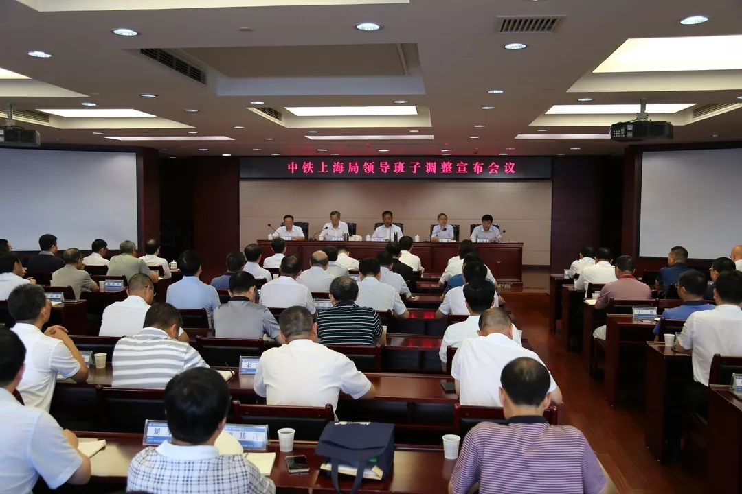 本报上海讯 7月26日上午10时,“中铁上海工程局领导班子调整宣布会议”在机关十楼报告厅召开。中国中铁党委副书记、执行董事周孟波,总工程师孔遁,党委干部部部长贾惠平,党委办公室经理李巍巍;中铁上海工程局党委书记、董事长荣树森,新任总经理闫子才,在家的领导班子成员出席会议,机关部门副职及以上领导干部,各子分公司、各区域指挥部党政正职共计100余人参加会议。荣树森主持会议。