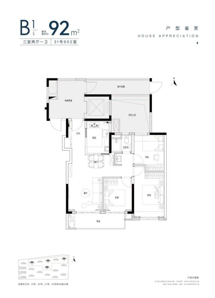 建面约92㎡3房2厅1卫,192套