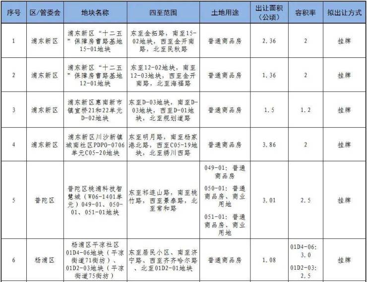 以上地块最晚于2023年8月前组织出让公告。具体安排以上海市规划和自然资源局网站、上海土地市场网、中国土地市场网等发布的出让公告为准。