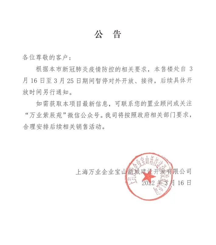 为有效阻断疫情传播,上海多个售楼处发布疫情防控较新通知,全面升级防疫措施。其中,部分售楼处需要48小时核酸检测报告、采取预约看房制度,部分售楼处暂停接待。