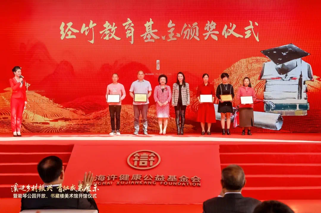 今日振兴乡村教育,他日乡贤人才辈出。活动现场,经竹公益慈善基金会宣布对坝头小学奖励10万元,还奖励了溪边自然村5位考取本科院校的大学生,并重点对坝头小学乡村教师代表许为农进行奖励,表彰其近四十年深耕乡村教育事业的事迹。经竹公益慈善基金会由许健康捐赠1000万元设立,主要用于开展扶贫帮扶、助学助教、奖教奖学等公益慈善活动,打造提振教育的“种子计划”。