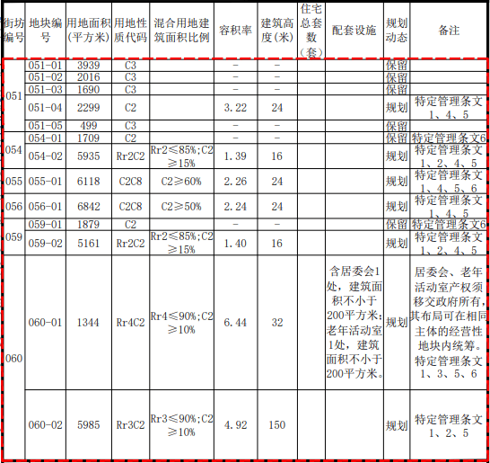 其中,054-02地块规划有风貌住宅、商业等,Rr2≤85%,C2≥15%,容积率1.39,限高16米;