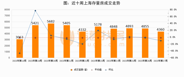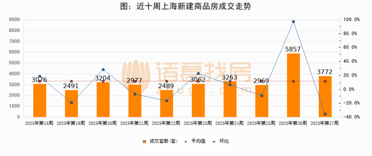 【上海成交周报】第27周新房成交3772套,二手房4360套,涨价房源873套