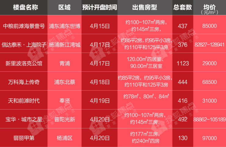 下周4月14日-4月20日预计开盘楼盘