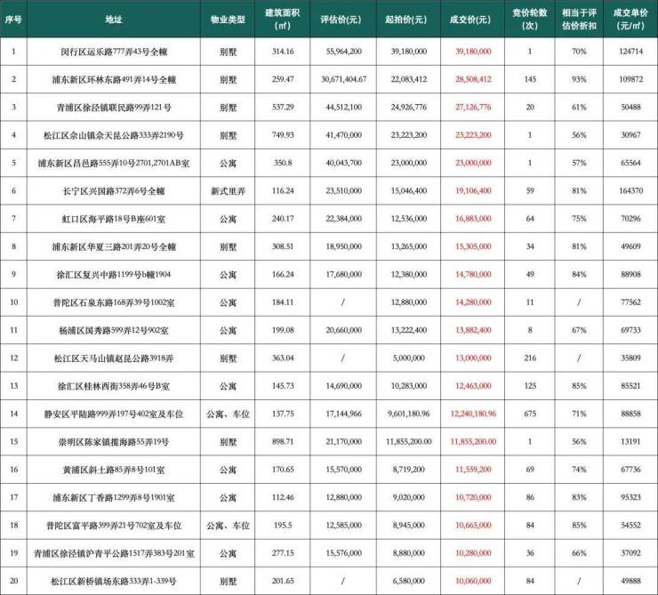 最低半价“捡漏”!1月上海超20套千万级法拍房成交