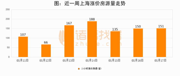根据诸葛找房数据显示,上海24小时涨价房源量为151套,较05月16日增加1套,环比上涨0.7%。与此同时,涨价房源占比小幅扩大,业主信心有所提升。
