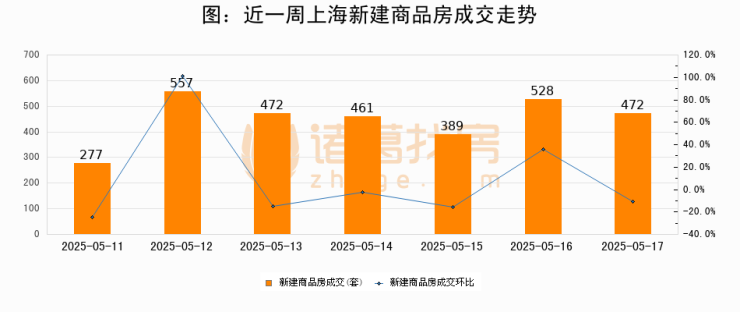 【上海成交日报】05月17日新房成交472套、二手房1163套;涨价房源151套