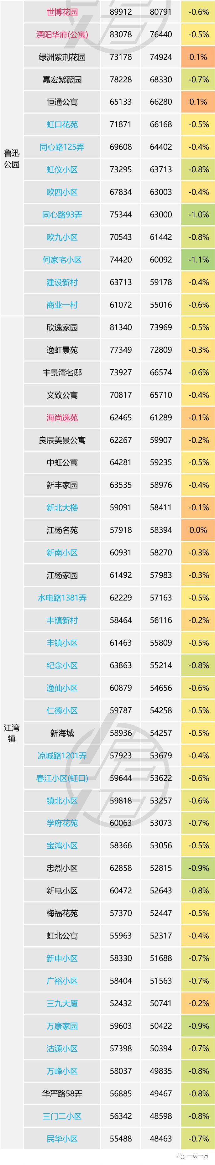 上海房价涨跌实情2:虹口、杨浦、闸北、宝山、普陀、嘉定主要挂牌小区