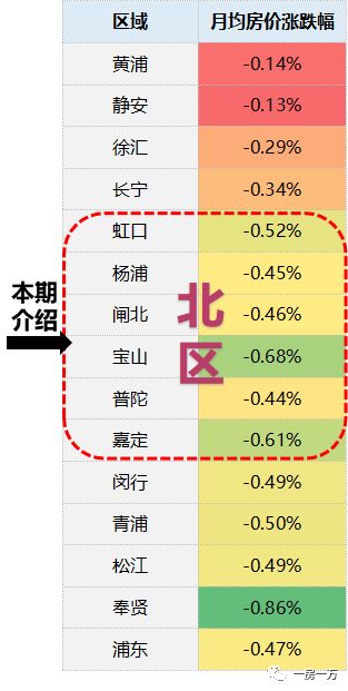 北区各区房价月均涨跌情况如下