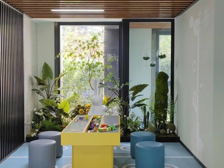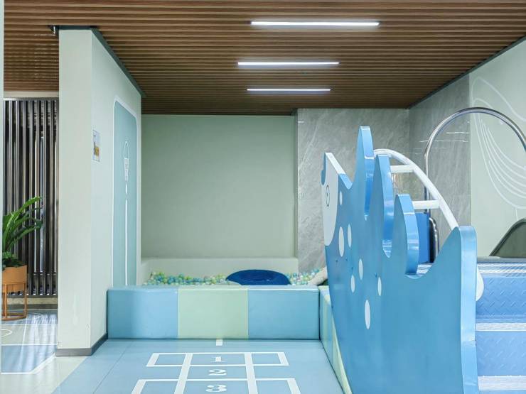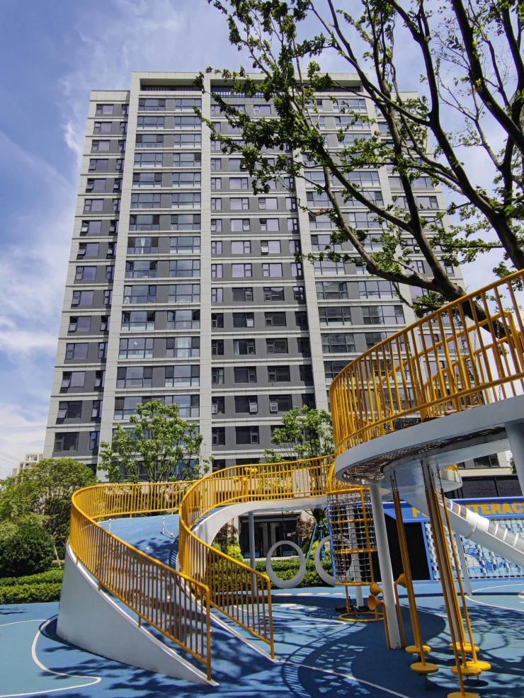关照全家人的兴趣爱好,让0-100岁都有得玩。项目打造四大主题架空层:休闲会客厅空间、童趣梦想学堂空间、全龄运动健身空间、静享静谧书吧空间,涵盖全龄层交互功能,满足业主精英日常社交与休闲,无论是晴天还是下雨,架空层里的精彩从不间断。