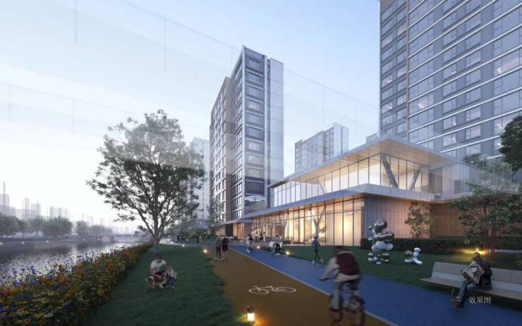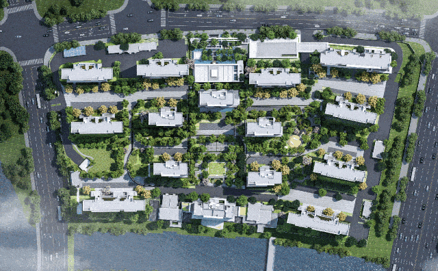 以配套功能激活场所和景观空间,打造乐活生态的滨水空间,融入银河创意文化水廊,迎合用地界面特质打造乐活生态感。