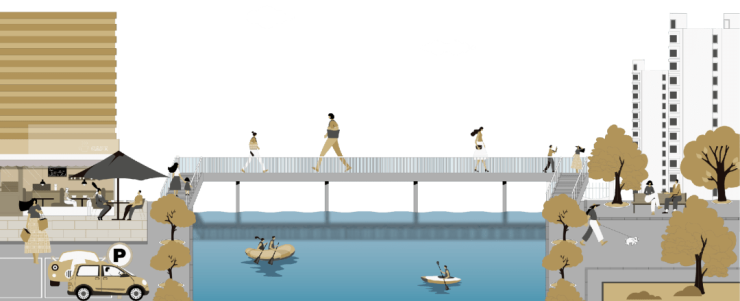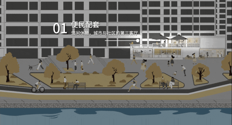 水是柔软的边界,是漫步时的暂歇,而非终点。河流是城市中的自然,依水而居,获取平静,让城市中的河流成为家门口的风景。河流同时也是文化的载体,将居住与文化连结,让都会之心,根植于每个人的生活里。