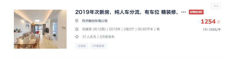 那试想下,漕河泾、张江高薪人群对周边板块的价值辐射作用。漕河泾旁的高品质住宅同济融创玫瑰公馆2018年开盘价约7万/㎡,如今挂牌价已13万+/㎡。