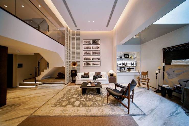 除了难以复制的地段优势,万科在产品上也再次实现了突破与创新。高福云境引入 GAD、英国 1508 London、意大利 Lissoni & Partners等国际专业设计天团,尝试以国际化设计视角融合在地文化肌理。设计过程中,团队保留了项目所在区域历史建筑的原有空间格局,从石库门建筑中提取天井、里弄等传统空间元素,通过现代极简设计手法进行重构。在建筑形态上,采用错动竖向体块切分、转角切角收分、弧形塔冠及标志性金色阳台等设计语言,形成兼具历史语境与现代感的建筑立面,探索历史街区风貌与超高层居住形态的协调共存模式。