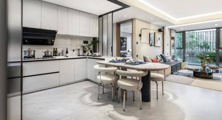 还有很多魔鬼小细节,让居住更加舒适。客厅、卧室墙面均为墙布交付,电视背景墙为岩板交付,这两项几乎在总价400万级的项目里是看不到的;还有顶面交付射灯及隐藏灯带,使得居家的灯光更加柔和温馨!阳台大面积玻璃落地窗,视野通透;阳台移门可结合需要进行地轨拉平、从而地砖通铺实现餐客厅阳台一体化。
