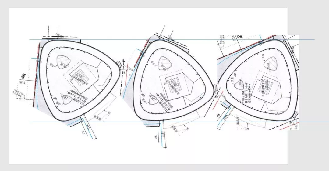 这栋塔楼的平面在上海独一无一,是一个类似于变体鲁洛克斯三角形的(Reuleaux triangle)等宽曲线。