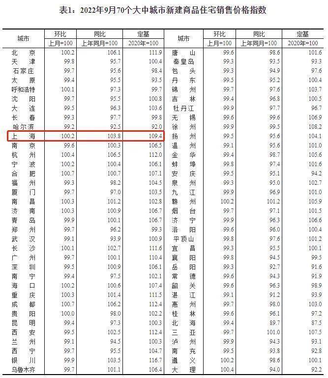 国家统计局:9月上海新房价格环比上涨0.2%,同比上涨3.8%