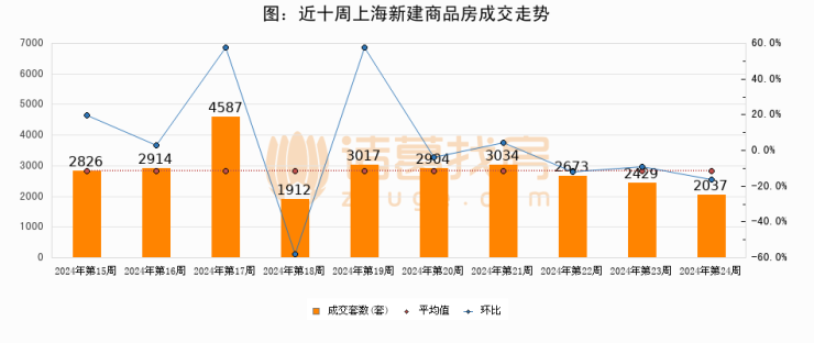 【上海成交周报】第24周新房成交2037套,涨价房源1445套
