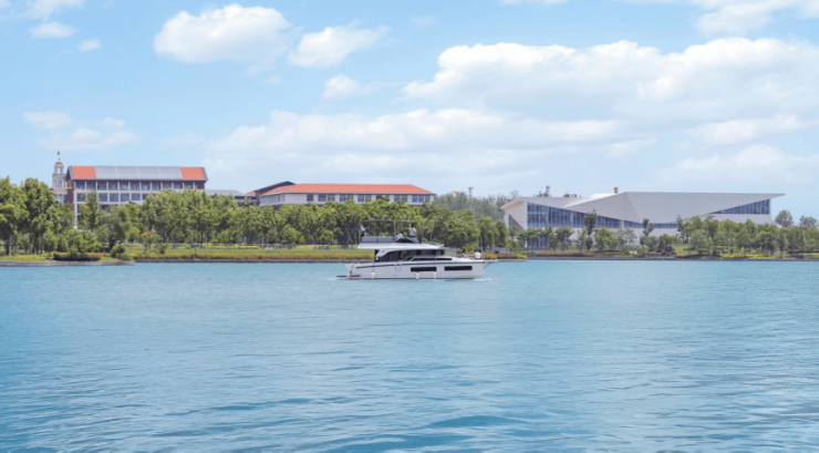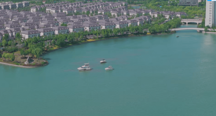 兰香湖的水利景观资源,凭借其出众的生态环境和优越的地理条件,正逐步获得市场与游艇行业的高度认可。就在本月,杰特赛特海洋携其代理的德尔菲系列进口电动游艇惊艳亮相上海,为兰香湖再添一抹亮色。如今的兰香湖面上,各式各样的游艇整齐排列,它们迎着微风破浪前行,勾勒出一幅美轮美奂的水上画卷,尽显人文生态社区的独特魅力。