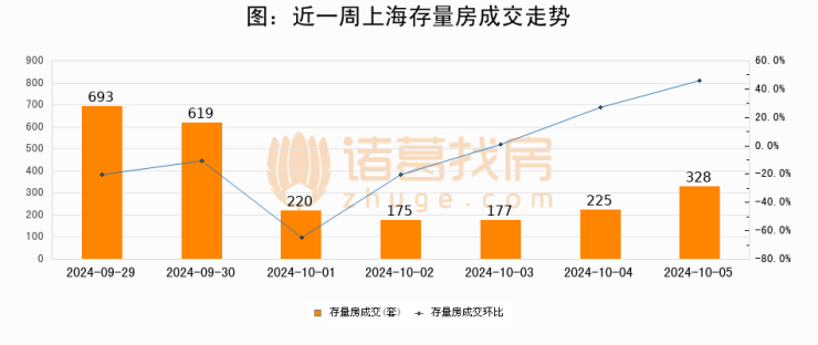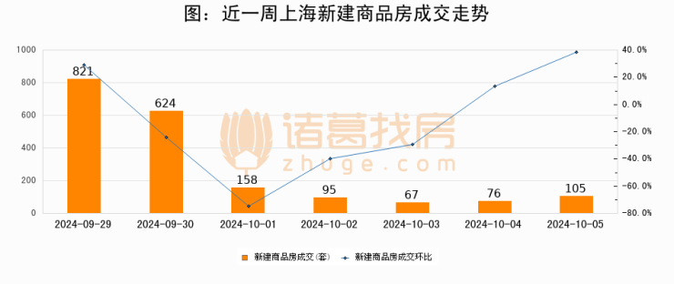 【上海成交日报】10月05日新房成交105套、二手房328套;涨价房源434套