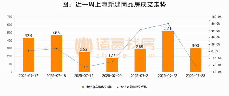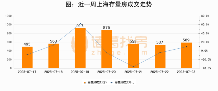 【上海成交日报】07月23日新房成交300套、二手房589套;涨价房源117套