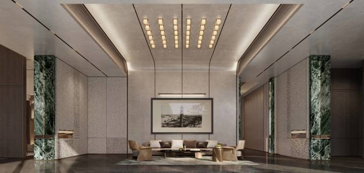其一,选材。御湖境标志性的引入了PRADA绿,借鉴梵克雅宝等世界顶级珠宝品牌的精湛技艺,将奢石运用在入户大堂、墙壁以及园林布景之上。每一道海浪般的肌理,都经历了大自然千百道的工序,浑然天成且独一无二,成为御湖境拥有者身份的象征之一。