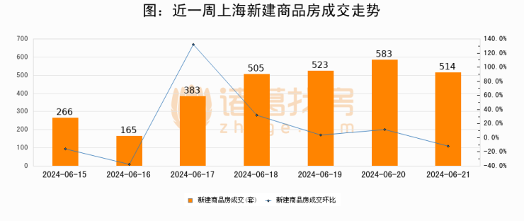 【上海成交日报】06月21日新房成交514套;涨价房源217套