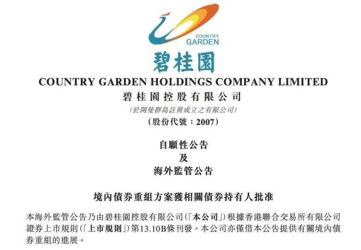 公告显示,碧桂园境内最后一笔债券的重组方案已通过债券持有人会议审议。至此,其涉及9笔合计规模约137.7亿元的境内债务重组方案已全部通过。