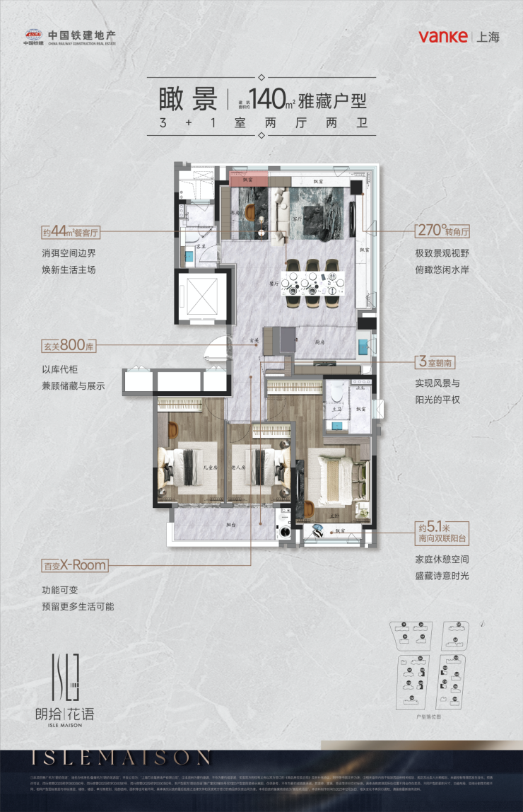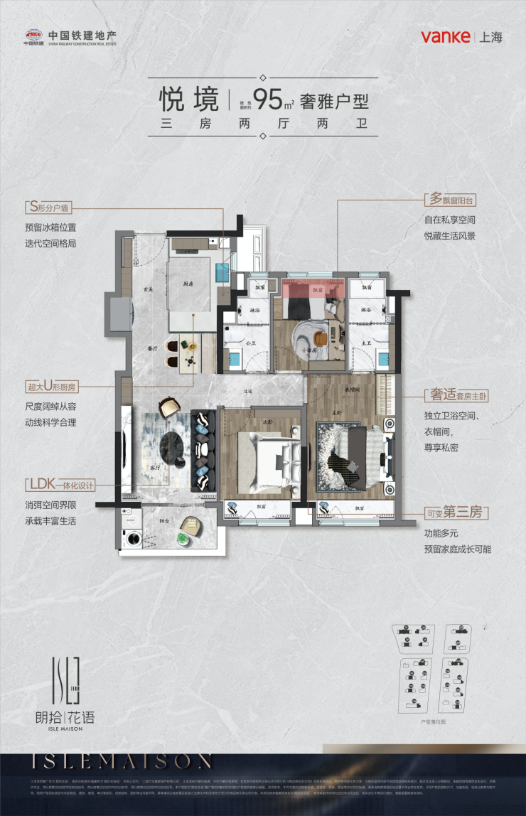 值得一提的是,考量到改善家庭的不同需求,朗拾花语二期共推出了建面约92㎡3房、95㎡3房(边套/中间套)、99㎡3房、133㎡3+1房和140㎡3+1房,6种户型刚需改善需求都能满足;其中95㎡3房尺度感媲美寻常100㎡;133㎡、140㎡3+1房,类一梯一户,私密性更好,居住体验感可直接对标大平层;