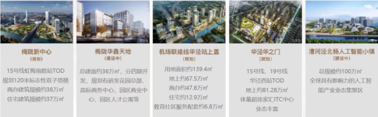 区位定标地位,而地位又影响规划。朗拾花语所占位的梅陇,作为闵行“中部崛起”的战略核心,无论是规划能级、还是商业配套,都可圈可点:朗拾花语周边2站范围内,汇聚60万方梅虹南路上盖、约81万方华之门规划、约36万方华鑫天地、约67万方华泾战上盖等4座城市TOD,共约400万方商业、办公体量。