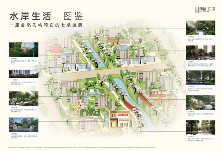 在卓越的城市配套之上,朗拾花语自身亦沿T型自然水岸规划3500方商业配套,打造剧场影院及多功能厅等,以商业与住宅的交织,微缩一个城市理想单元,一一还原浪漫、繁华、精致、格调的水岸生活,定标梅陇的人居想象。