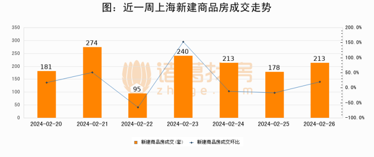 【上海成交日报】02月26日新房成交213套;涨价房源147套