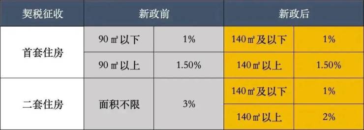 ·首套住房:140㎡及以下1%,140㎡以上1.5%