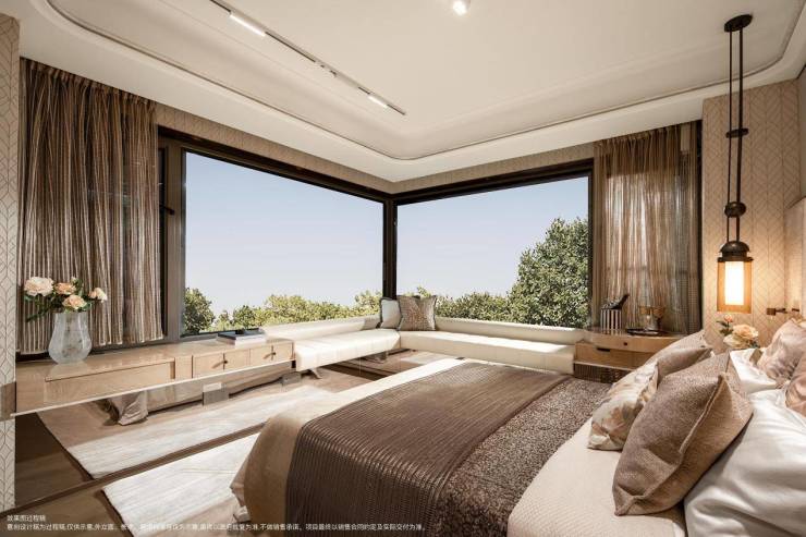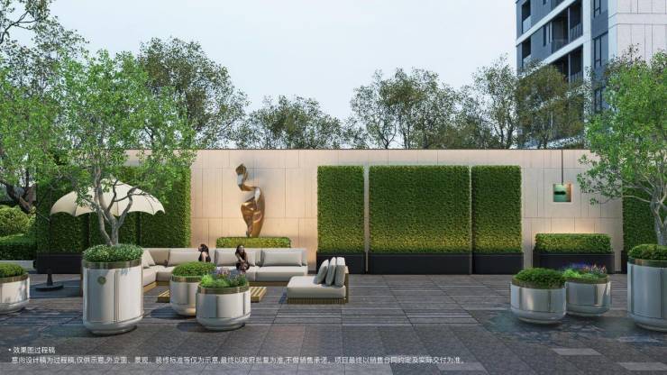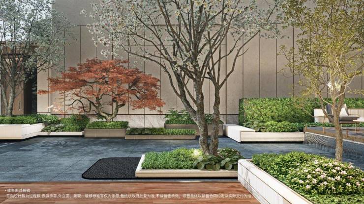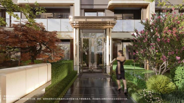 景观设计以「静逸革新 功能革新 转场革新」借鉴顶级奢华酒店,定制了六大花园和五重景观空间,打造洄游的空间体会,结合泛华所的三面环景境界,将“静谧奢享”贯穿始终。酒店式景观园林与江浦公园绿意形成无界衔接