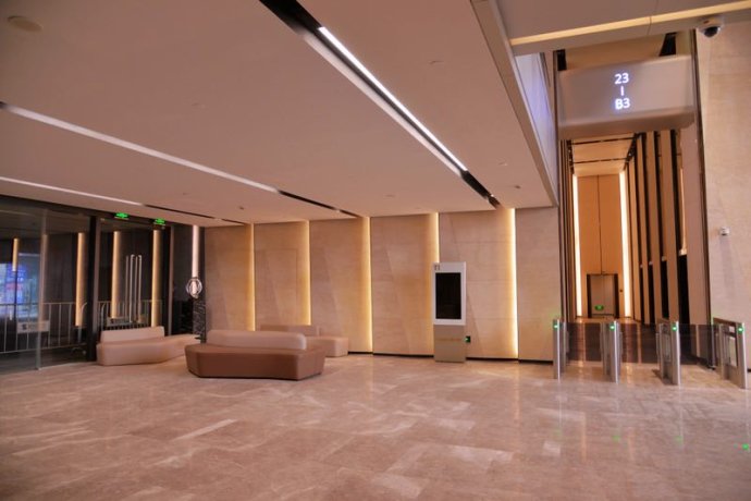 交付标准 天花:风机盘管空调系统、烟感、喷淋、入户电箱 地板:100mm架空地板,承重:200公斤/平方米 墙面:玻璃幕墙及公共区域走到装饰 单元隔墙及进门:实体隔墙、乳胶漆墙面,标准进户门 供电系统 双路供电 后备发电机提供公共区域应急使用 租赁区域供电标准每平方米100瓦 暖通系统 风机盘管空调系统 每人每*35立方米新风*量 垂直交通 电梯品牌:OTIS 客梯数量:7台 货梯:1台 消防梯:1台 电讯系统 网络服务商:电信 物业管理 30元/平方米/月