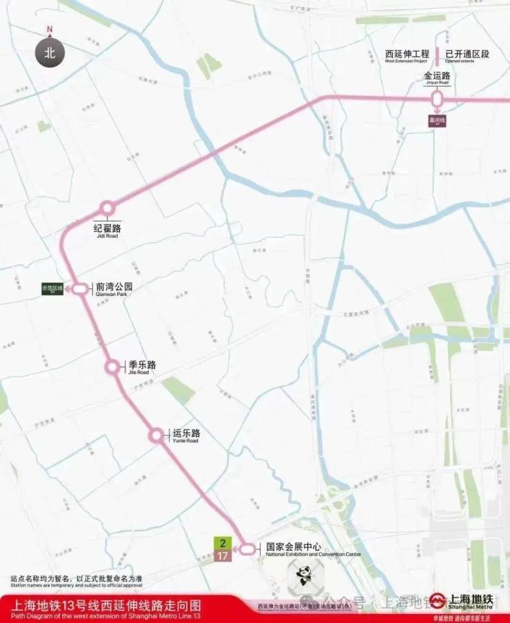轨道交通13号线西延伸自金运路站(不含)向西延伸,设车站5座,预计2026年底开通。
