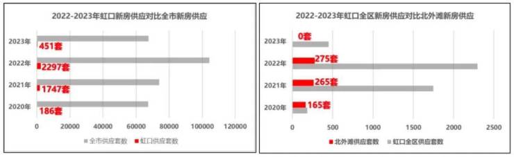 据搜狐焦点统计,2023年十二个批次新房供应中,虹口仅有江湾一个项目推出451套。如果追溯到2020年至今,这四年来,虹口区的供应也是少之又少。