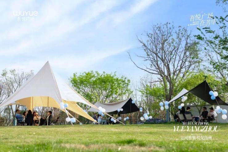 ● 回溯阳春三月的扬州风华,吾悦商管苏中区域以一场风雅之会,与各界伙伴盛情相聚。活动以古运河文化为脉,融萃扬州元素于主视觉、电子邀请函与现场布置之中,精心打造户外雅集。宾朋们在融融春日、微风与绿意之间,沉浸于愉悦的洽谈体验。