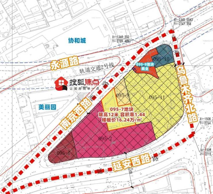 095-9地块为商业用地,用地面积为958㎡,容积率为1.91,总建面0.19万平方米,地块限高16米,成交底价7454万元,楼板价约40737元/㎡。