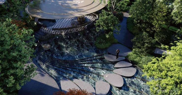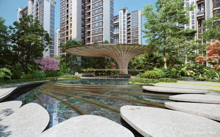 约2.2低密容积率,让自然奢享成为可能。一轴一带一环九园,“阅读花园、翠渊绿屿、趣味森境等”等功能组团点缀其间,链接居者间与自然的无界往来;除此情境营造外,无数次寻找的珍贵孤植、还原自然的叠水、树池、雾森,在洄游动线的串联中,让居住享受声影、色彩、场域等带来的感知锐化,浸入宁静私域的愉悦。
