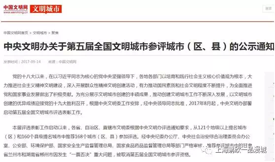 9月14日第五届全国文明城市参评城市(区、县)名单出炉啦!全国只有168个区县入围参加评选,咱大上海有嘉定区、闵行区、徐汇区3个区入围!