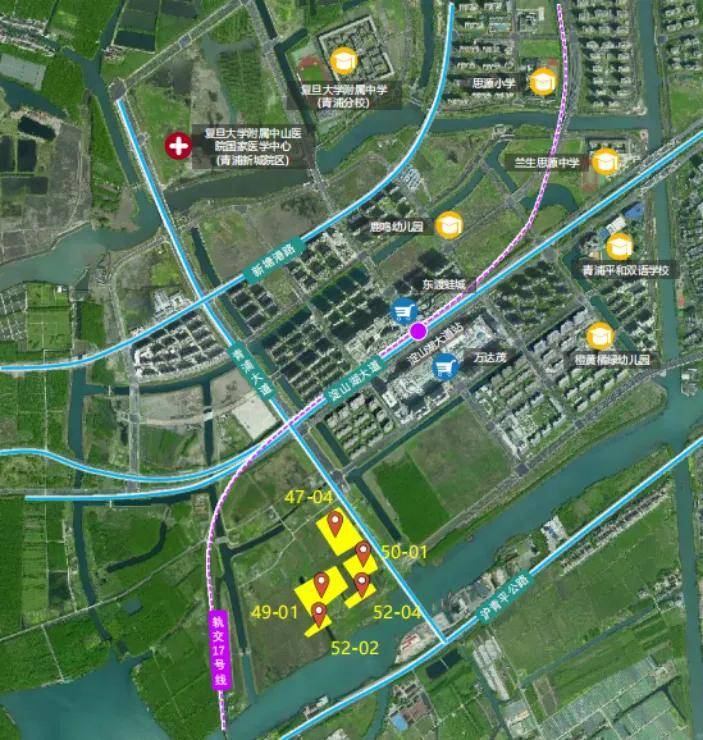 青浦区QPC10004、QPC10005 单元47-04、49-01、50-01、52-02、52-04地块总出让面积70377.23㎡,整体起始楼面价14925元/㎡。地块距17号线淀山湖大道站800米。