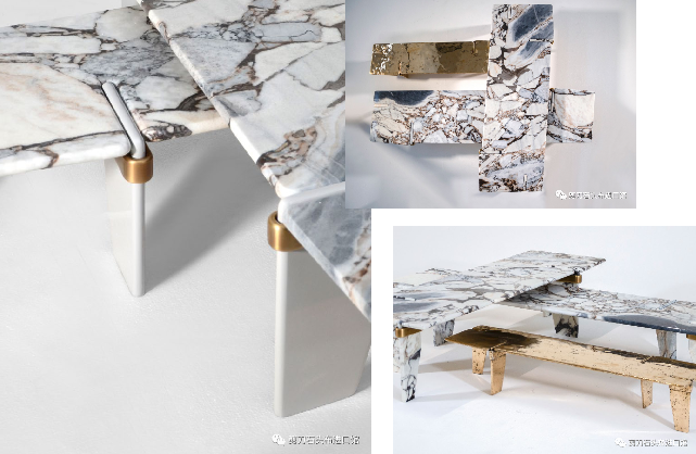 这套组合茶几与餐桌的材质相同,组合方式让大理石看起来会比较轻盈、更有层次感。