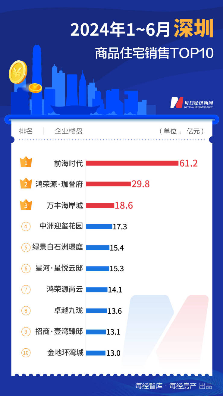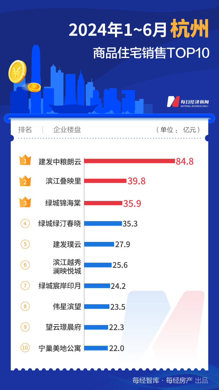 据中指研究院,上半年上海在高端住宅的持续热度下“一骑绝尘”,TOP10项目销售合计达到796.8亿元,超过2023年同期的768亿元。