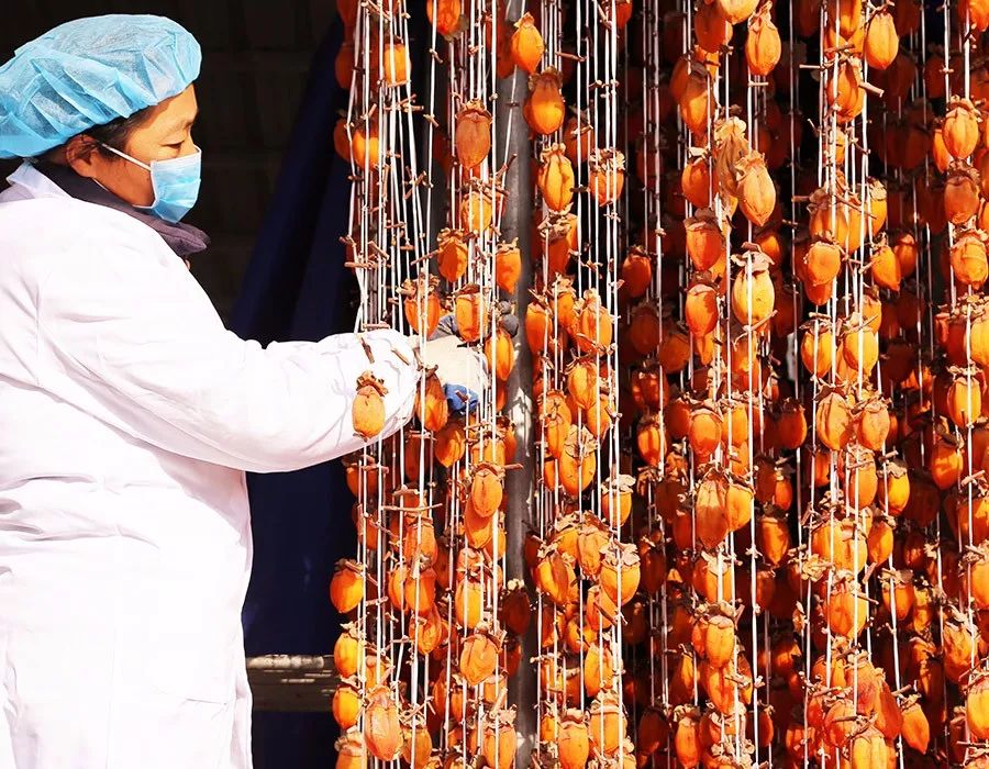 每年霜降,柿子红了,制成的柿饼肉多霜厚,清甜可口,软糯到会像溏心一样流出来!也因此,从明朝时就被晋封为皇家贡品,如今还获批成为了中国国家地理标志产品。